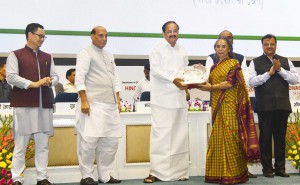 The H’ble Vice President of India, Shri M. Venkaiah Naidu presenting the third prize under category of PSUs in B region of Rajbhasa Kirti Puraskar, to Smt Geetha Muralidhar, CMD during