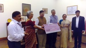 Contribution of Rs.10.50 crores towards Swatch Bharat Kosh. (Read from left to right in the photo) Dr. Guruprasad Mohapatra (Joint Secretary), Smt Rita Teotia.