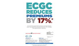 In line with the government policies to promote exports, ECGC has slashed the premiums further by 17%* to enable level playing field for exporters
