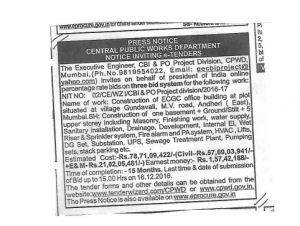 CPWD invites tenders for construction of ECGC Office Building, at Andheri, Mumbai